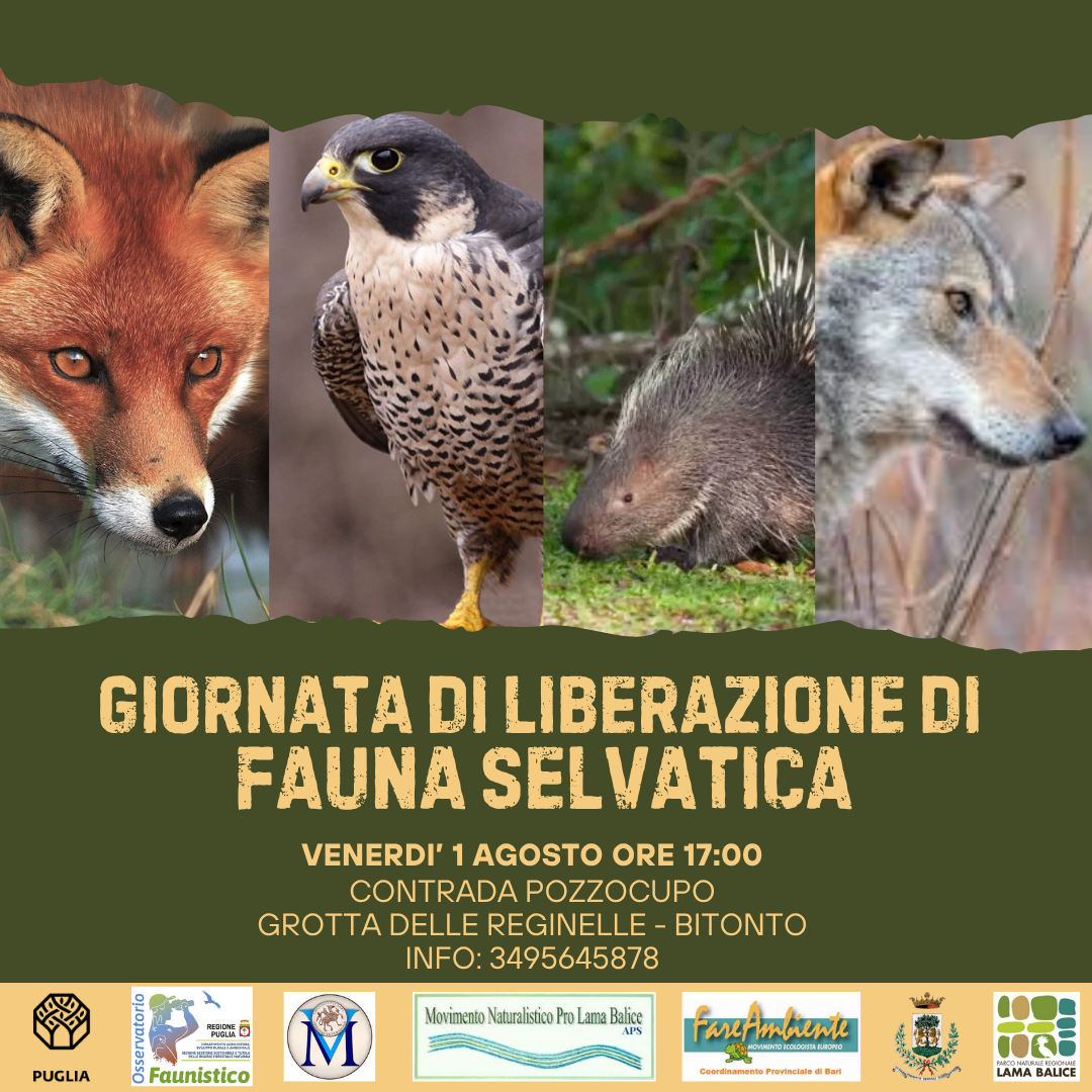 Venerdì 1 Agosto 2025 avverrà il rilascio in natura di esemplari appartenenti a diverse specie di fauna selvatica (rapaci diurni e notturni e una volpe), recuperati presso l'Osservatorio Faunistico Regionale in Bitetto (BA).