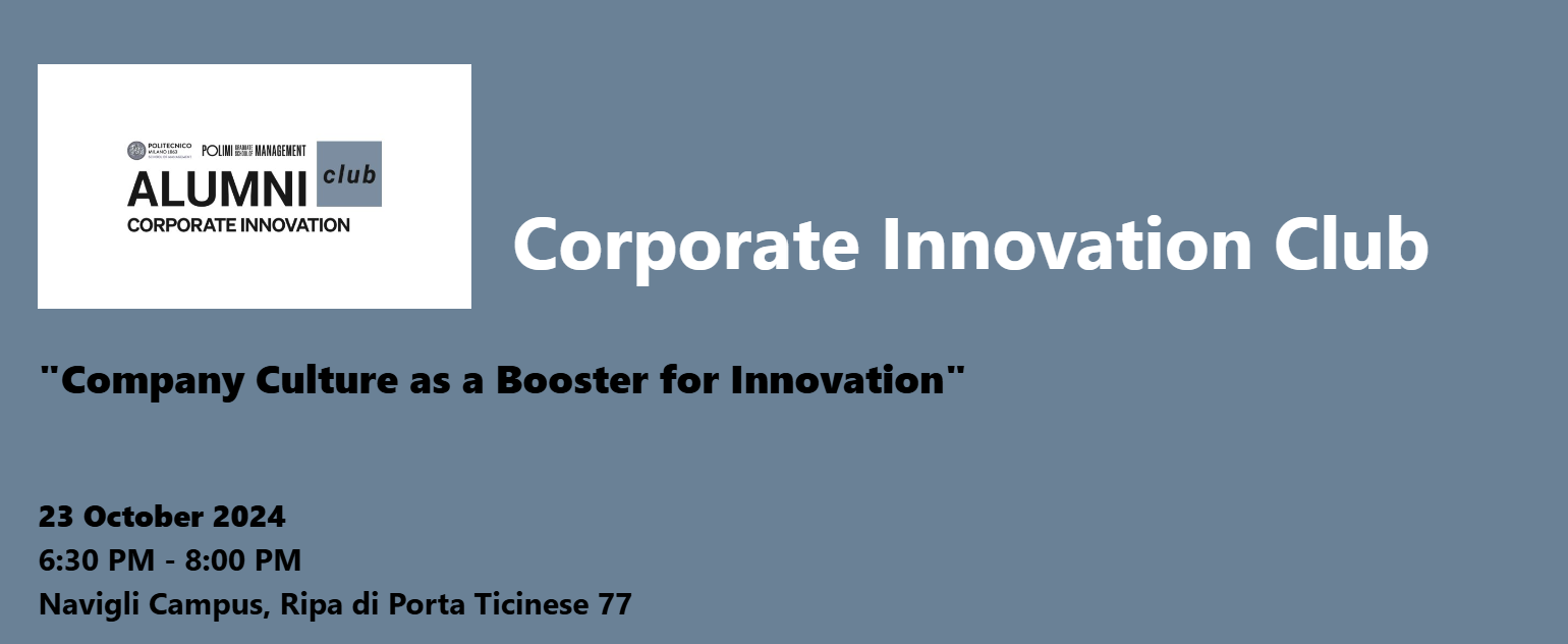 Il Corporate Innovation Club del Polimi presenta l'Evento "Company Culture as a Booster for Innovation"