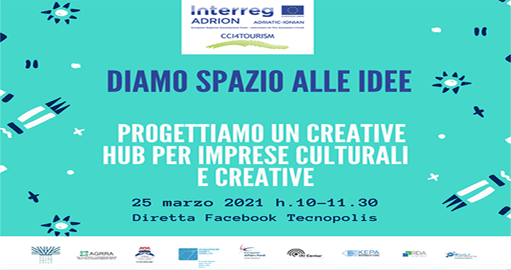 Un nuovo spazio per far crescere le idee creative, generare nuove competenze e integrare conoscenze, talenti, bisogni per le imprese culturali e creative: questa è la mission del nuovo Creative Hub che Tecnopolis, Parco Scientifico e Tecnologico dell’Università di Bari, sta mettendo a punto nell’ambito del progetto europeo CCI4Tourism, finanziato dal programma di cooperazione Interreg Adrion.