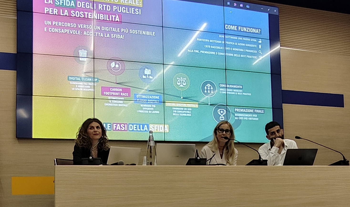 “Siamo – ha sottolineato Sara La Bombarda RTD di ARTI, capofila del progetto - la prima regione ad avere creato una rete tra RTD e ad aver dato concretezza al principio guida della sostenibilità digitale. Ma serviva una modalità organizzativa, uno strumento di lavoro per impostare una sostenibilità digitale concreta. Con questa prima sfida, un progetto a costo zero e replicabile, fondato sull’uso consapevole di tecnologie già esistenti e sul valore della collaborazione interistituzionale, abbiamo provato a monitorare e a chiederci come poter ridurre l’impatto ambientale e a valorizzare l’impatto positivo generato dal digitale. Dopo otto settimane, oggi abbiamo comunicato i risultati e le buone pratiche emerse, premiato i vincitori e condiviso le testimonianze dei protagonisti degli enti partecipanti, approfondendo soluzioni tecnologiche concrete per una digitalizzazione più consapevole e raccolto le prime candidature a voler replicare questa sfida nel proprio ente come nelle ASL di Lecce e BAT”.