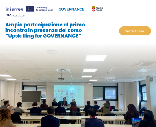 Il Progetto GOVERNANCE - Empowerment and simplification processes for a digital and good governed South Adriatic, finanziato dal Programma Interreg IPA South Adriatic 2021-27, rappresenta un elemento cardine nella strategia di innovazione amministrativa e di rafforzamento della dimensione comunitaria nell'area dell'Adriatico Meridionale.
